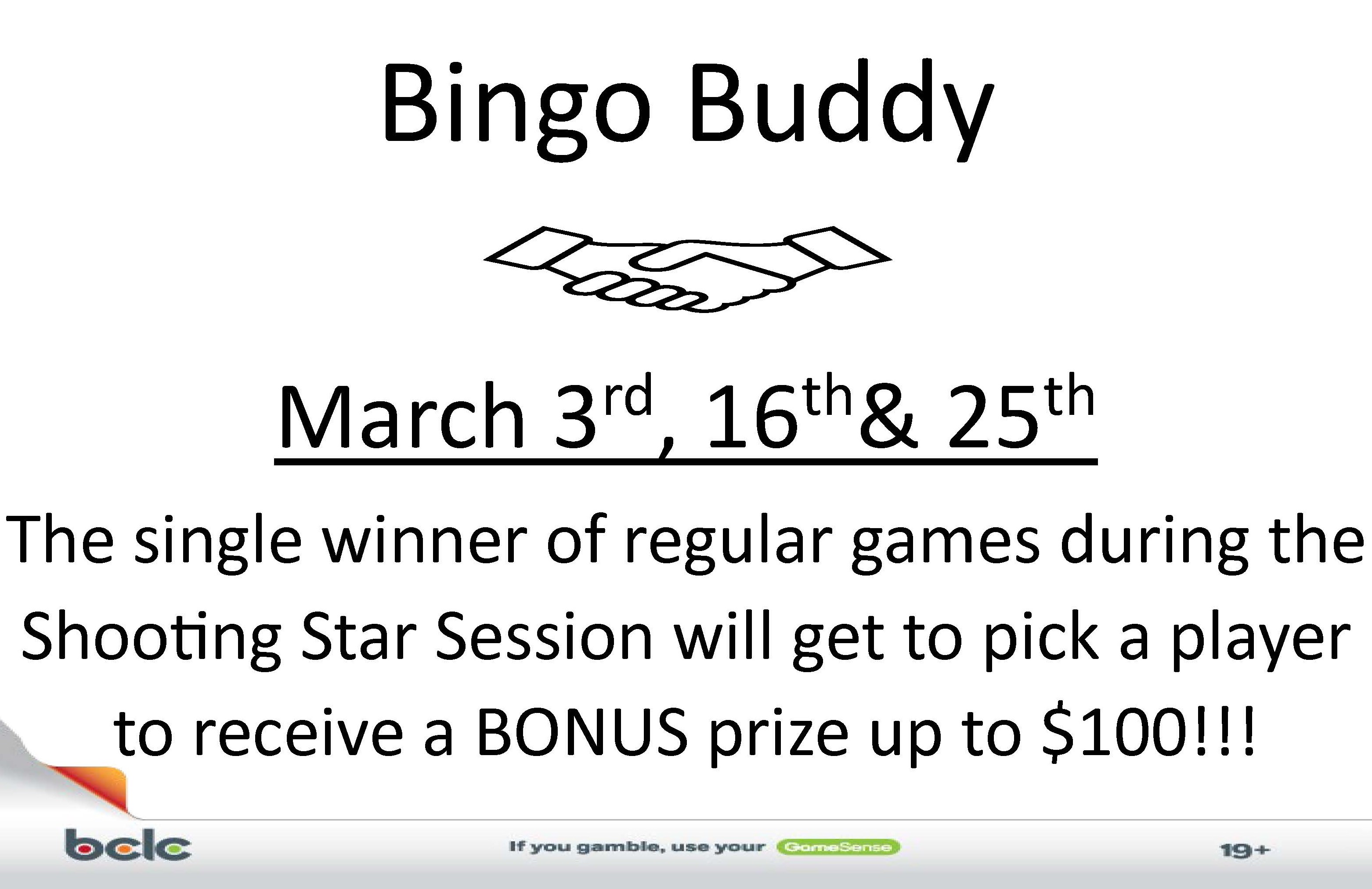 Bingo Buddy – March 3rd, 16th & 25th