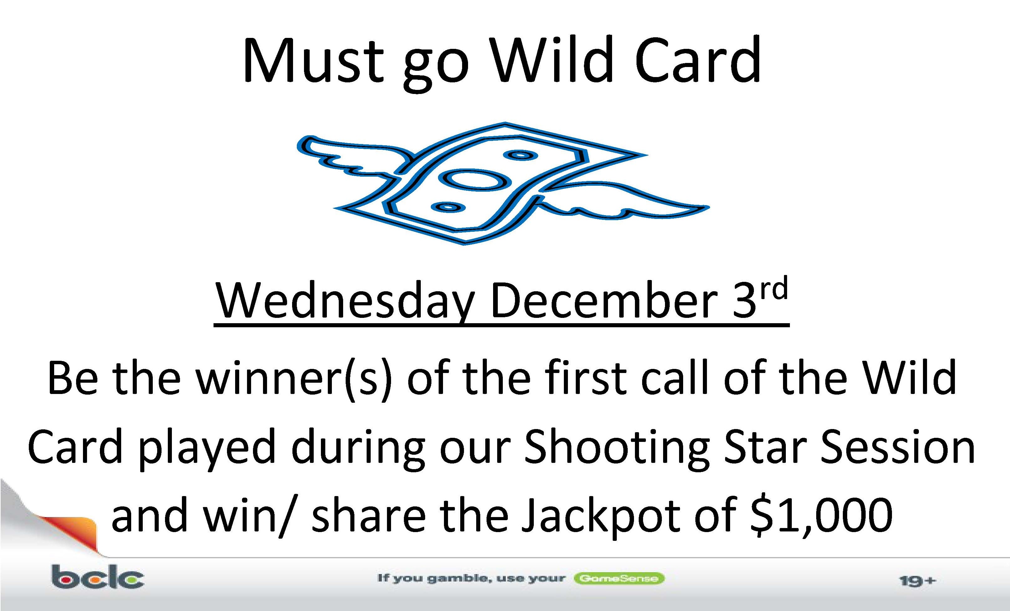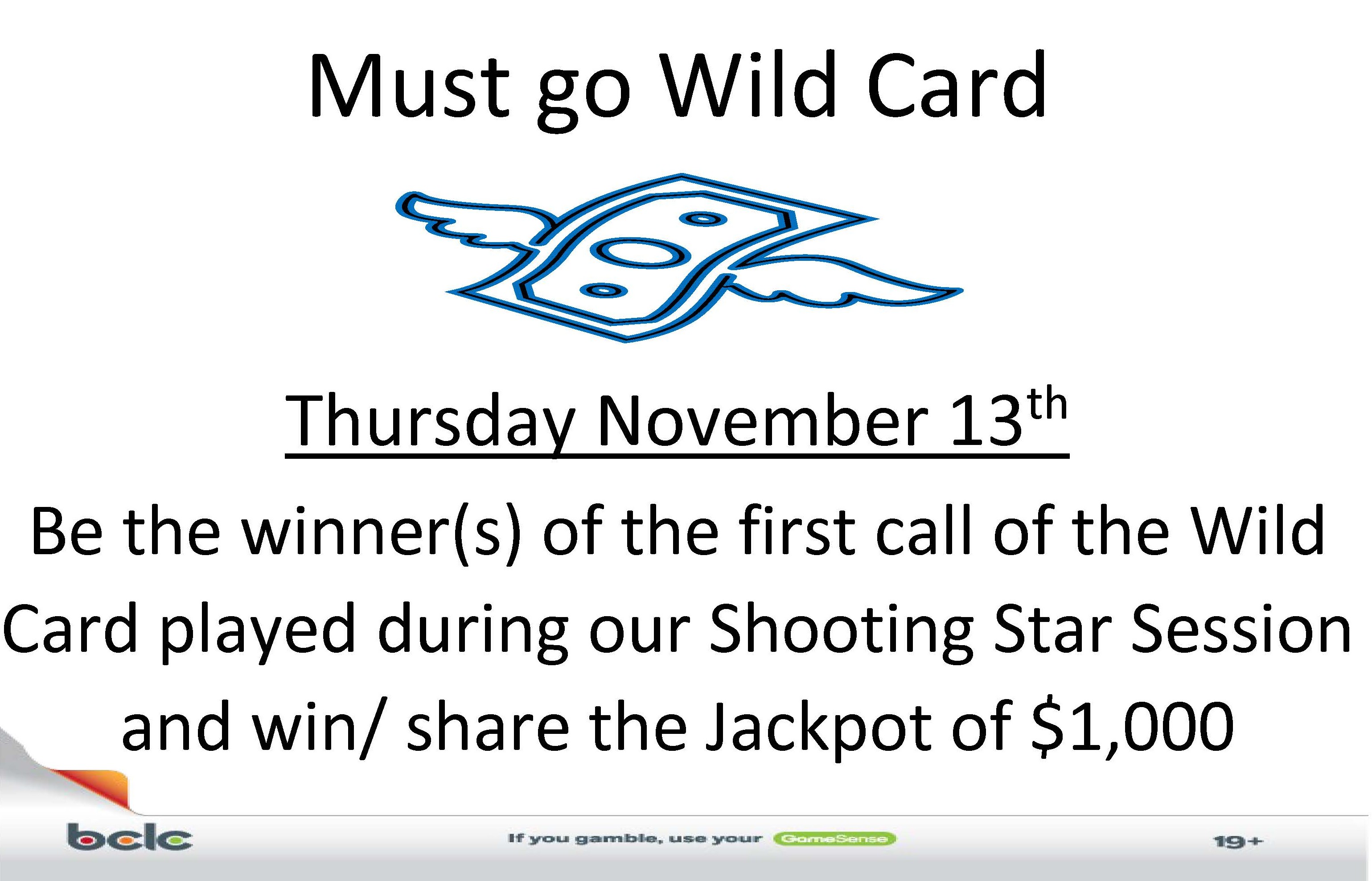 Be the lucky winner(s) of the first call of the Wild Card played during the Shooting Star Session and win/ share the jackpot of $1,000!!!