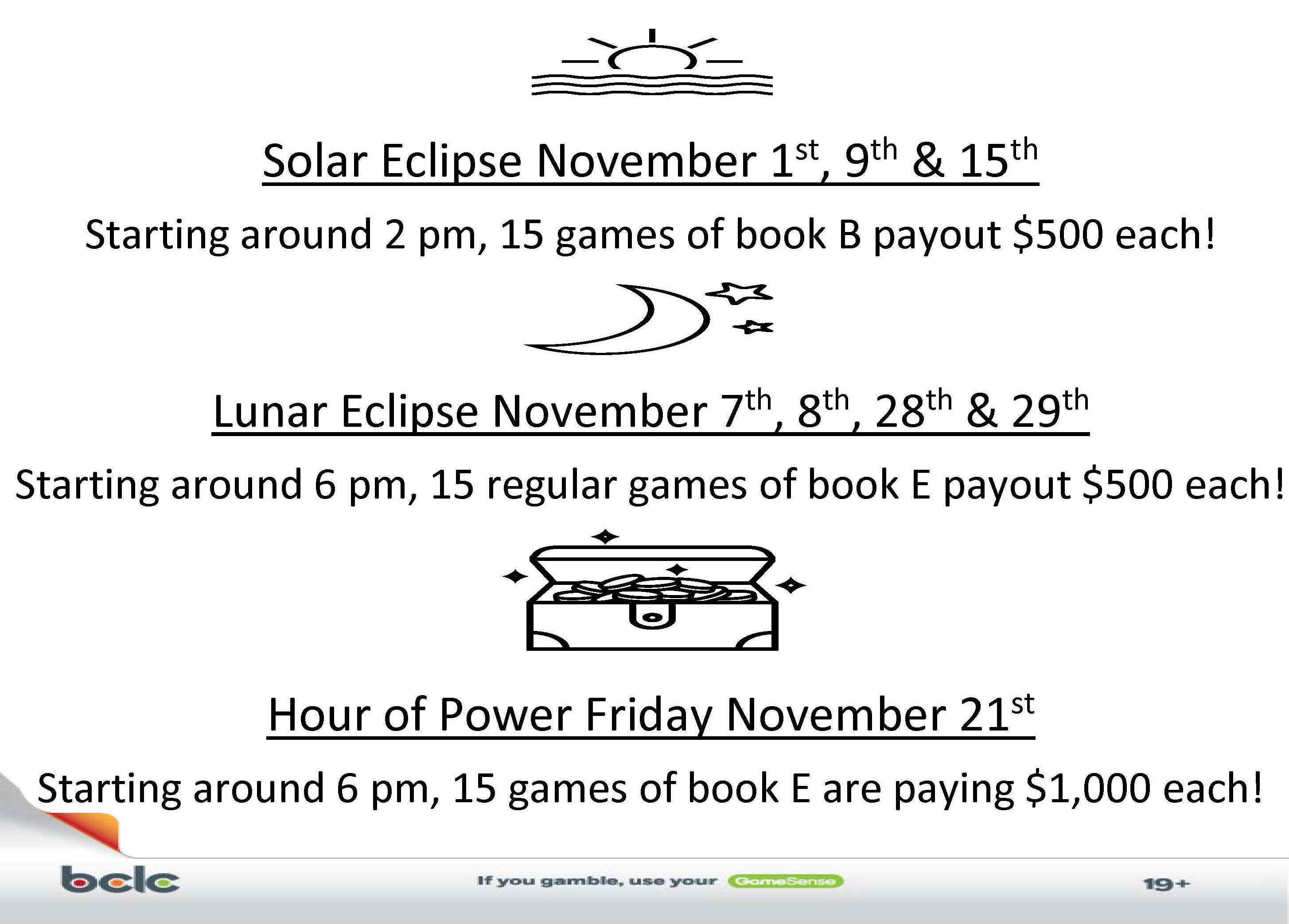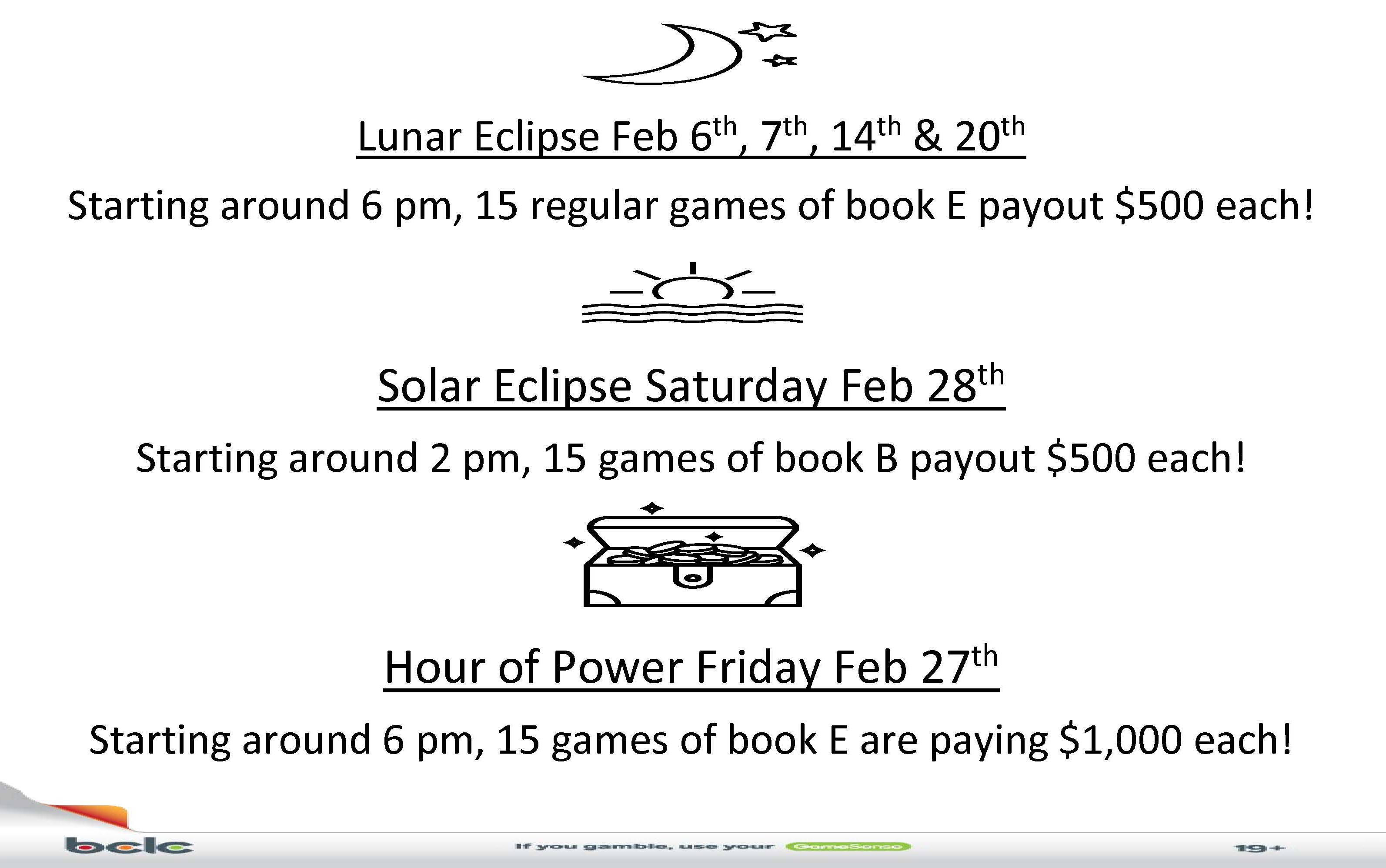Starting around 6pm, 15 regular games of book E payout $500 each!