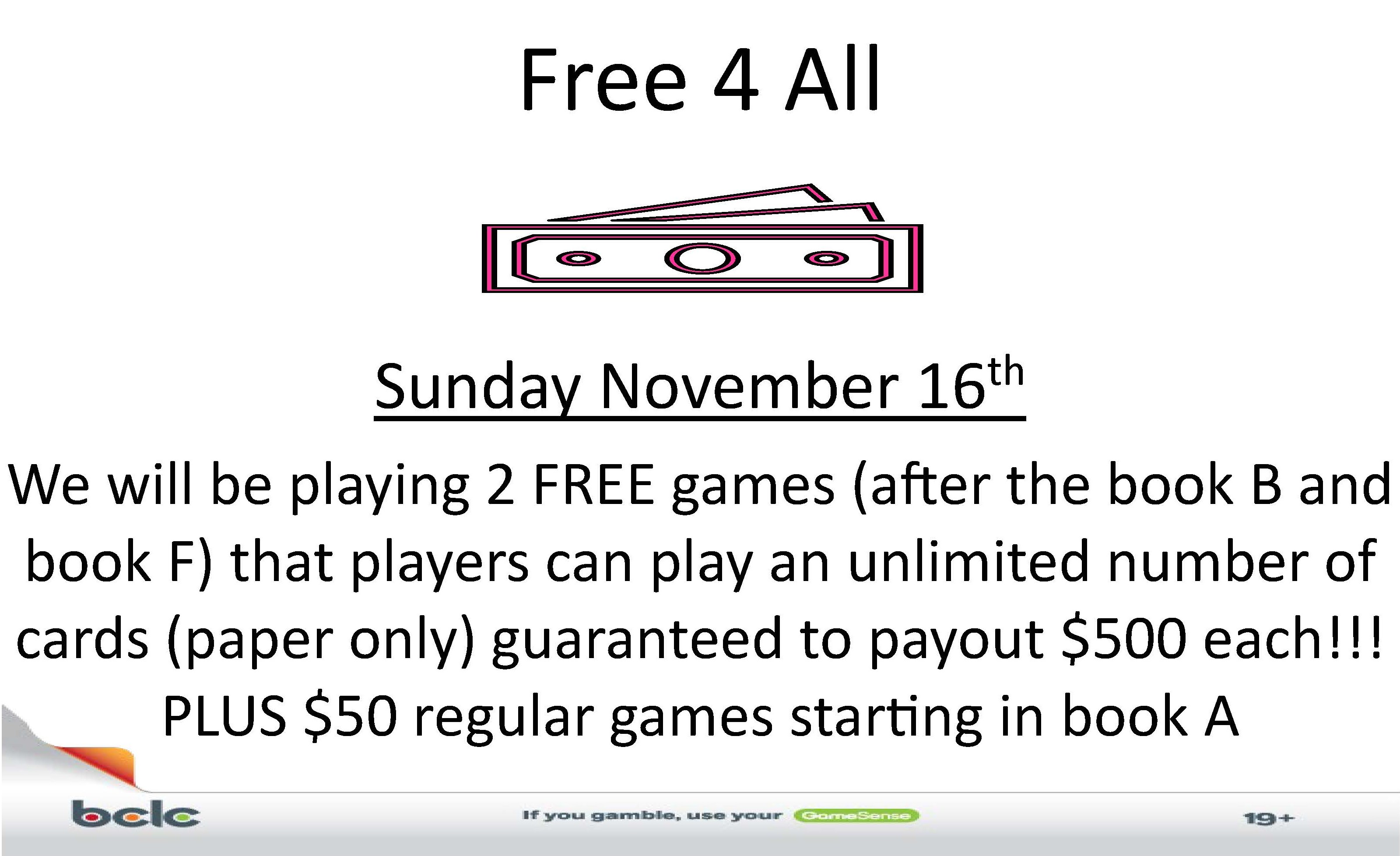 We will be playing a 2 FREE bonus games after book B and F that players can play an unlimited amount of cards (paper only) for $500 each in cash prizes!