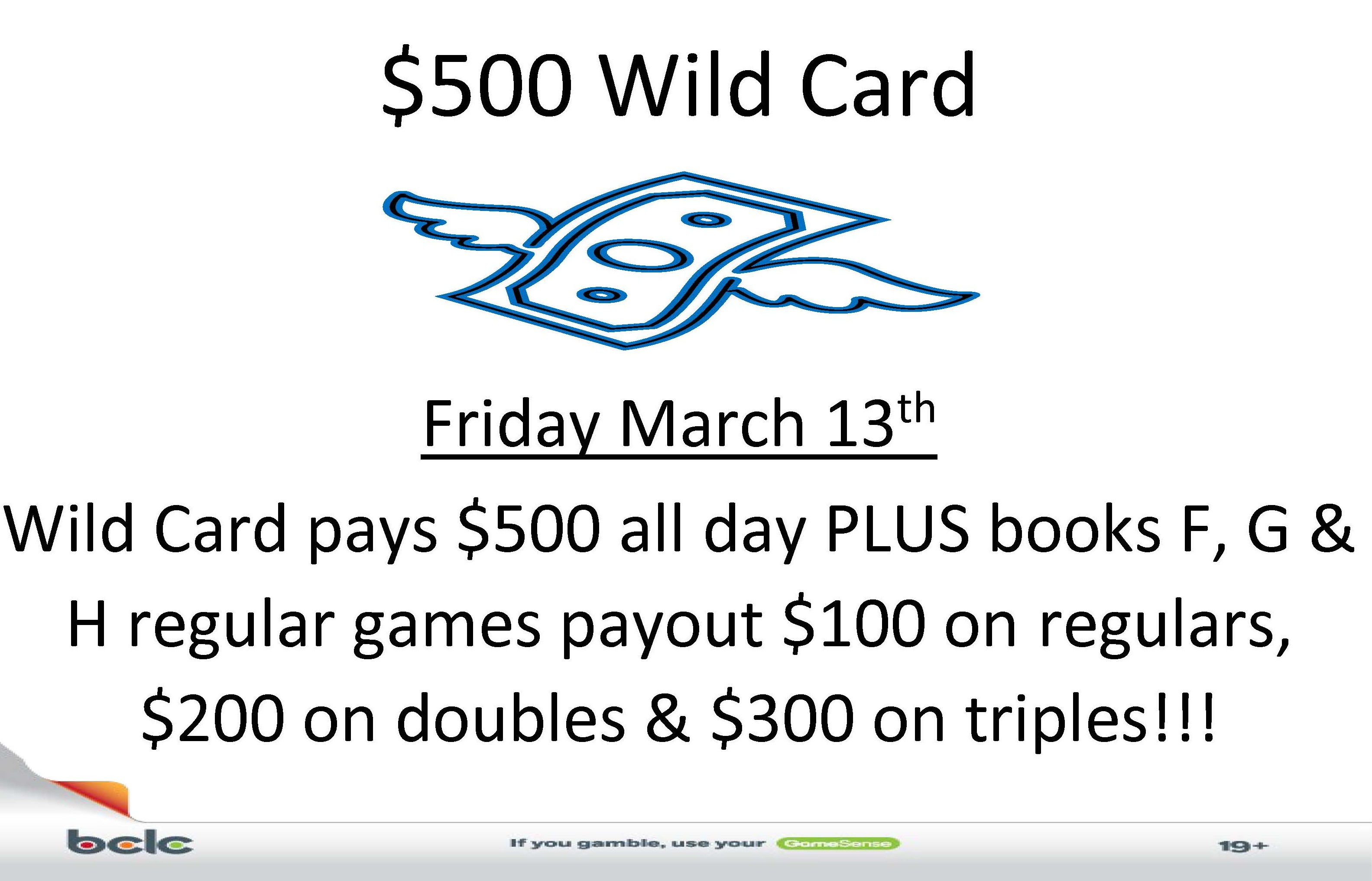 $500 Wild Card – Friday March 13th