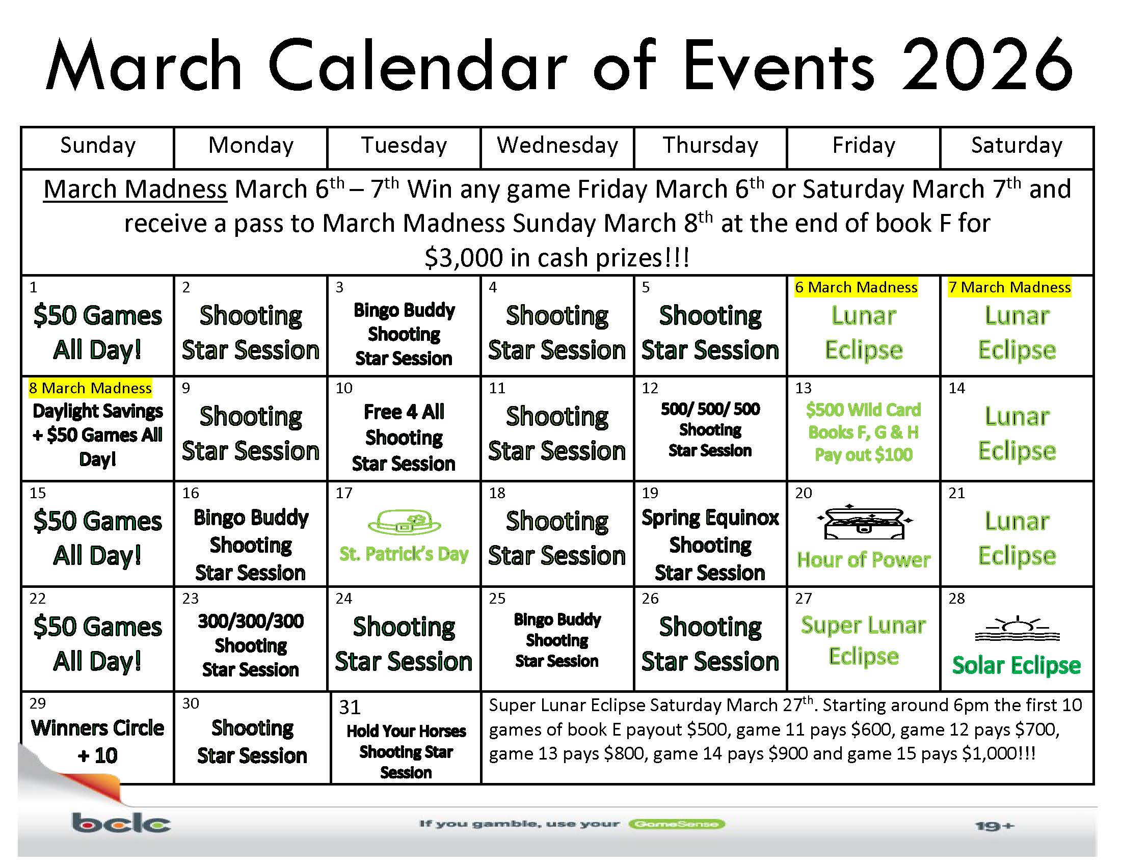 Starting around 2pm 15 regular games of book B payout $500 each!