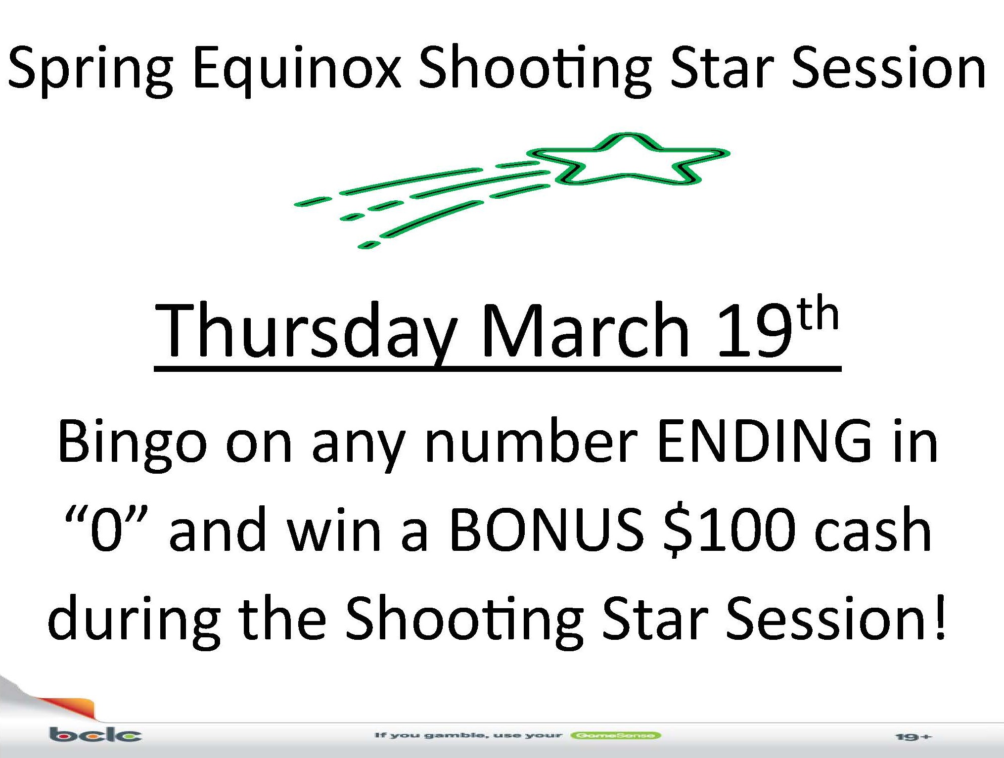 Bingo on any # ending in “0” and win a bonus $100 during the Shooting Star Session!