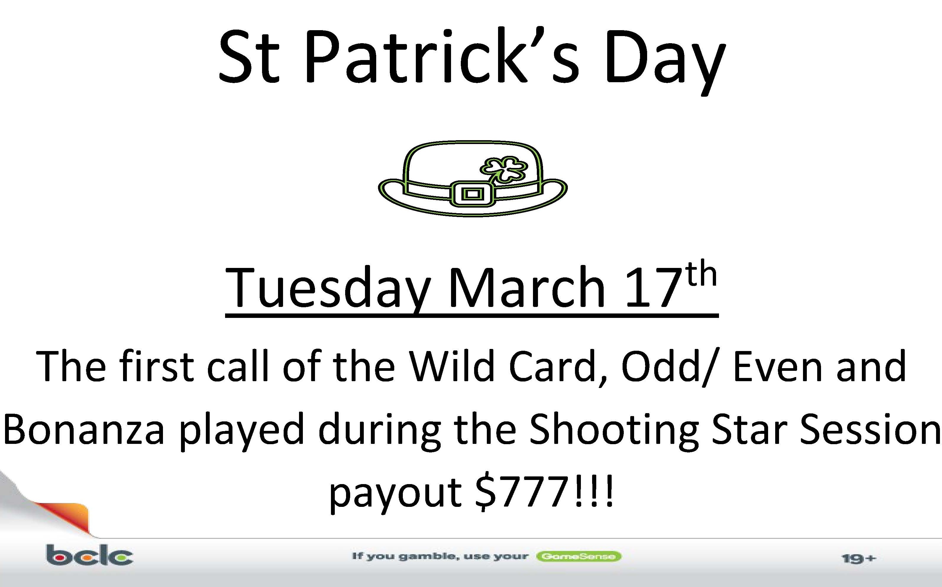 The Wild Card, Odd/ Even and Bonanza played during the Shooting Star Session payout $500 each!!!